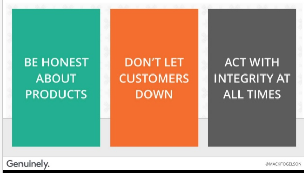 It’s a simple concept, but effective. And the sad thing is that apparently in 2016 we still need to encourage companies to be “honest about products” , “don’t let customers down” and “act with integrity all times”.
