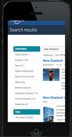 I was excited to write “New Zealand” in the search box. And here is what Lonely Planet is showing to me:
